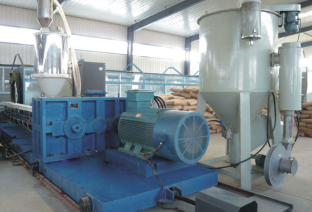 3PE纏繞作業線:采用靜電噴涂原理,潔凈且具有一定粗糙度的鋼管旋轉的通過中頻加熱室,使管體達到一定溫度后,隨即進入粉末噴涂室,利用流化床、靜電發生器及噴槍向鋼管表面噴涂形成所需的涂層厚度;再通過擠出機,分別擠出膠粘齊、聚乙烯纏繞到螺旋前進的鋼管上。再經水冷系統、在線檢測,管端打磨,即為成品管。
